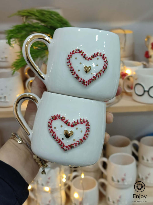 Handmade Heart Mug with Gold Handle - 10 oz Ceramic Mug - Valentine's Day Gift